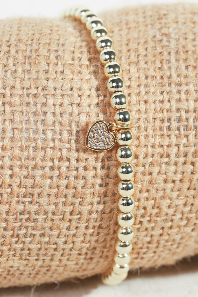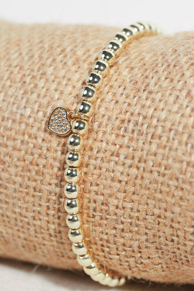 Gold Beaded Stretch Bracelet with Pavé Heart