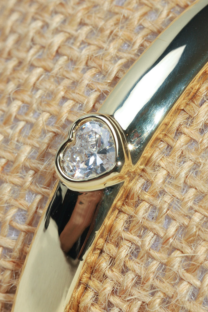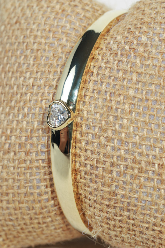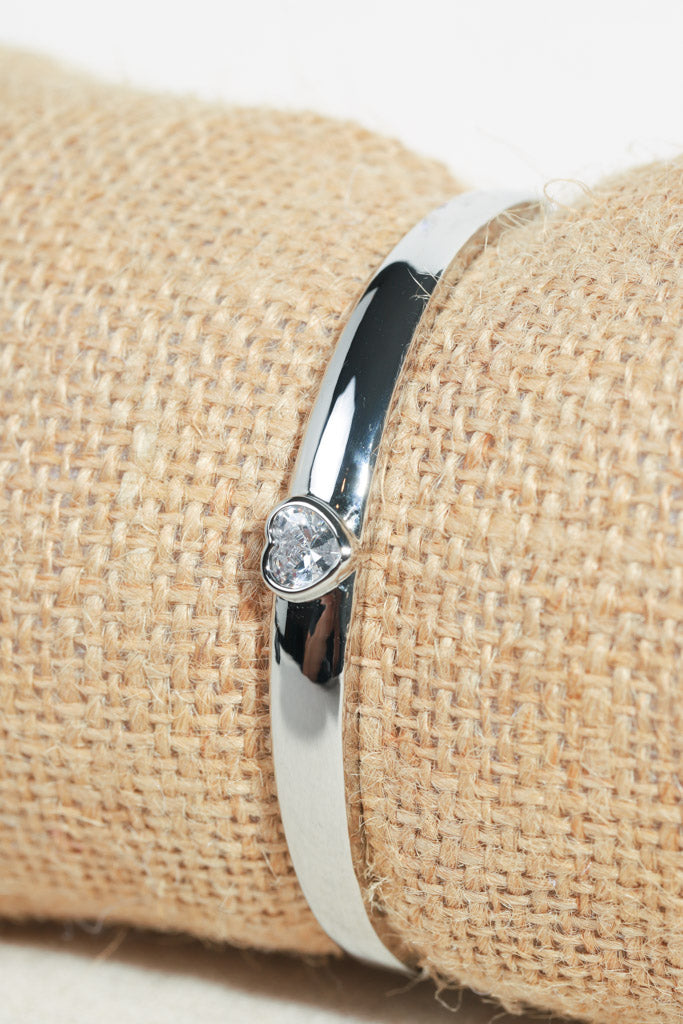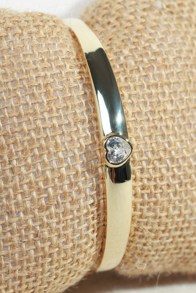 Minimal, modern, and effortlessly elegant — this sleek bangle bracelet is available in your choice of 14k gold over stainless steel or polished stainless steel silver. At its center sits a delicate crystal heart, adding just the right touch of sparkle.