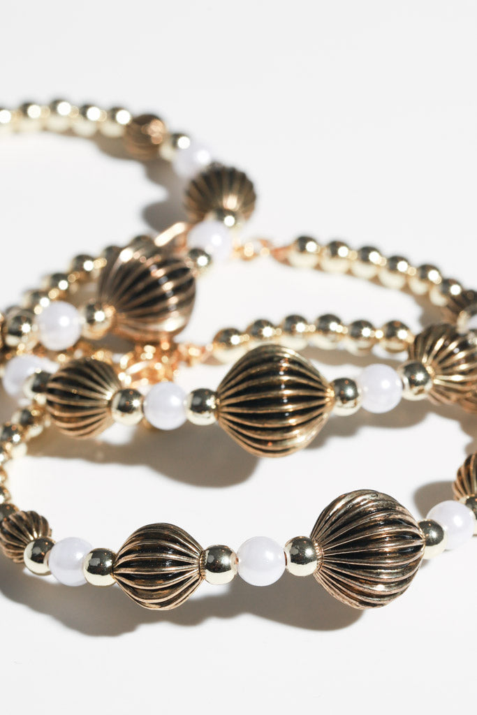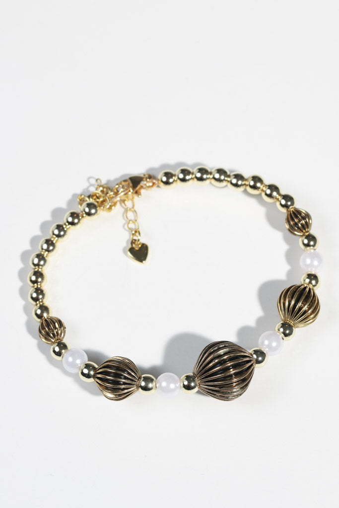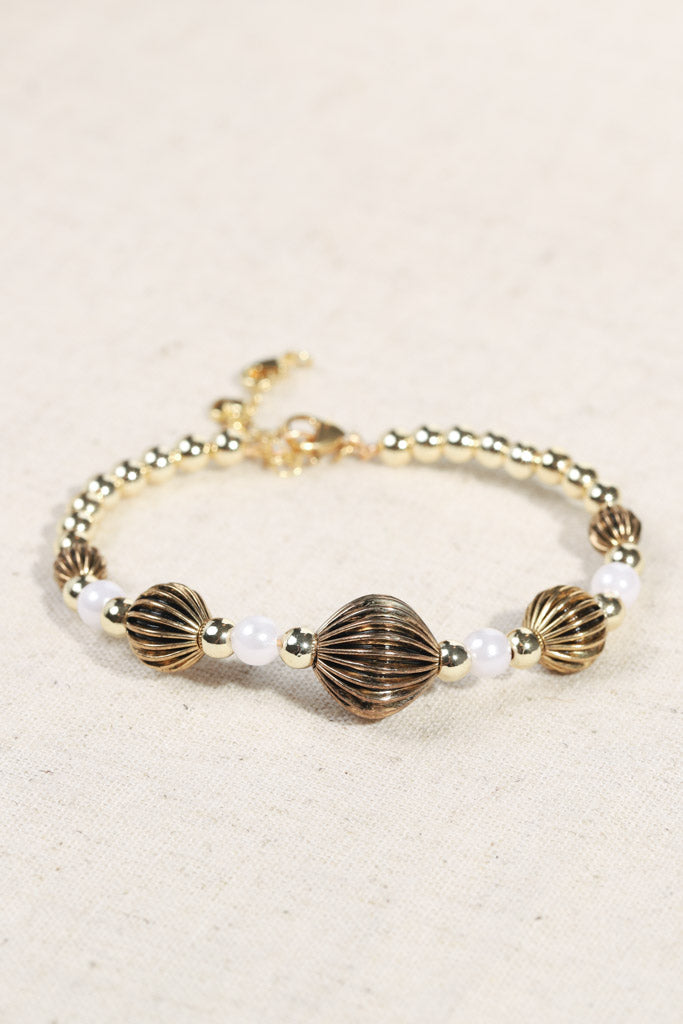 Gold Beaded Bracelet with Lantern-Style Statement Beads