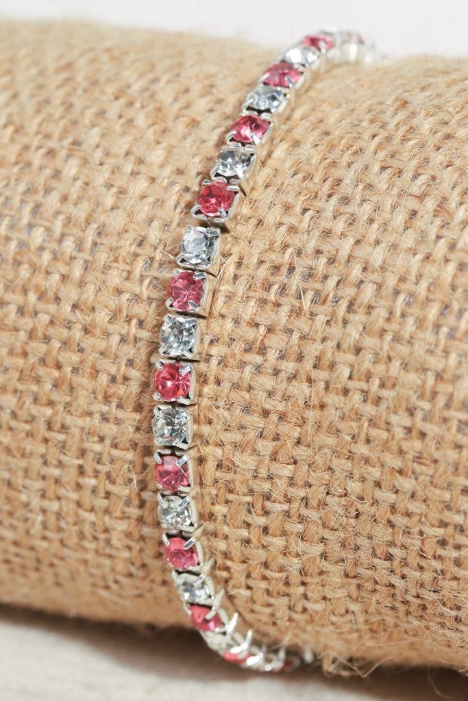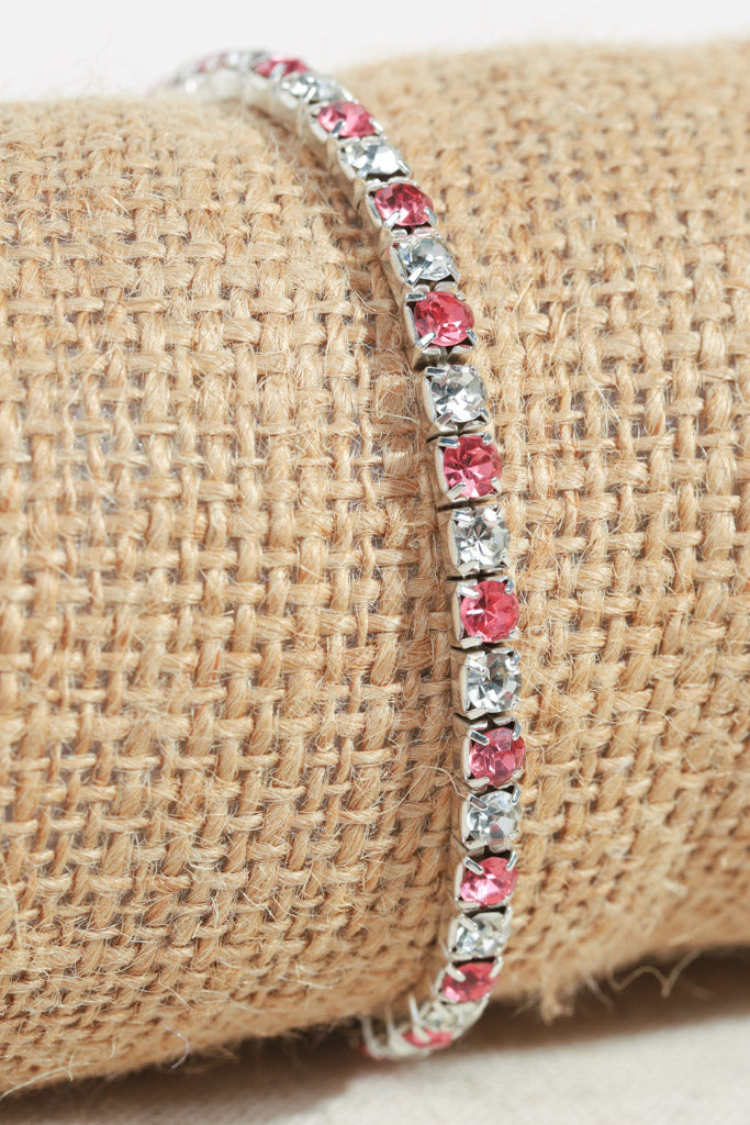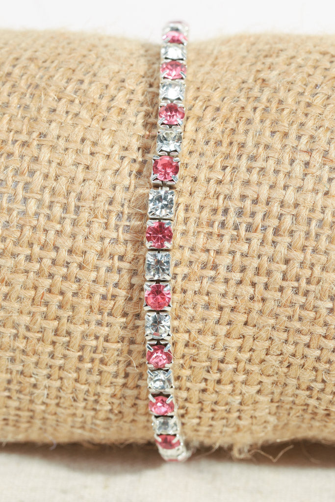 Available in three styles — silver with clear rhinestones, gold with clear rhinestones, and silver with pink & clear rhinestones — these bracelets look amazing worn solo, paired with a watch, or stacked in multiples for maximum glam. Try mixing them with gold or silver beaded bracelets for a layered look that’s effortlessly chic.