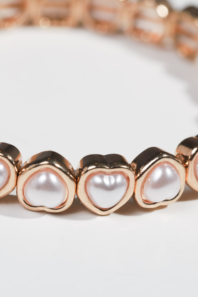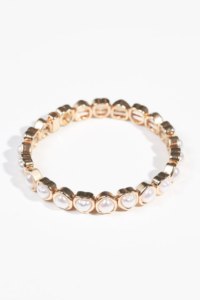 Romantic and timeless, this stretchy bracelet features a series of 14k gold fill heart beads, each cradling a luminous pearl bead at its center. The design is both elegant and versatile — perfect for stacking with other bracelets or wearing solo for a delicate touch of shine.