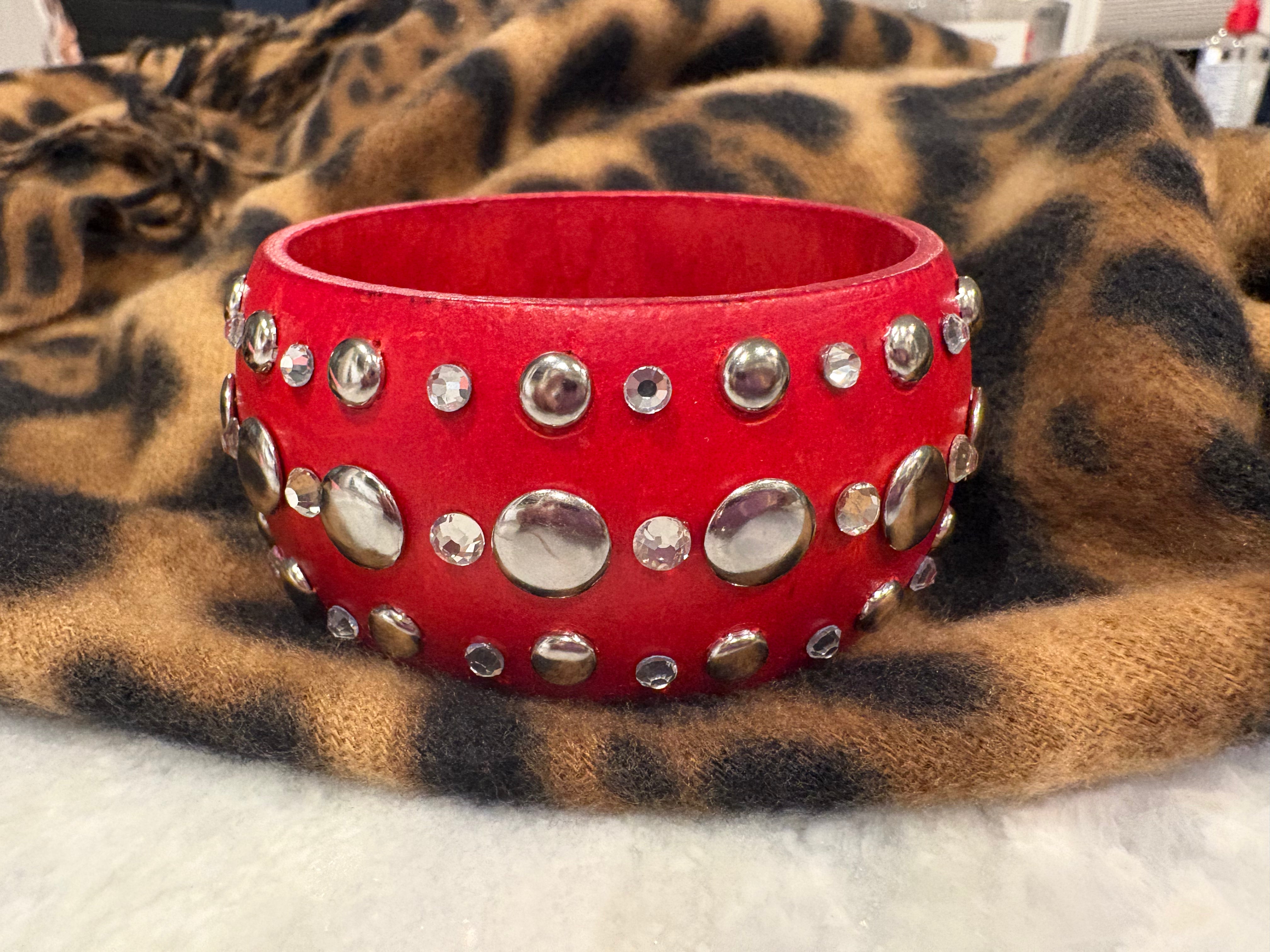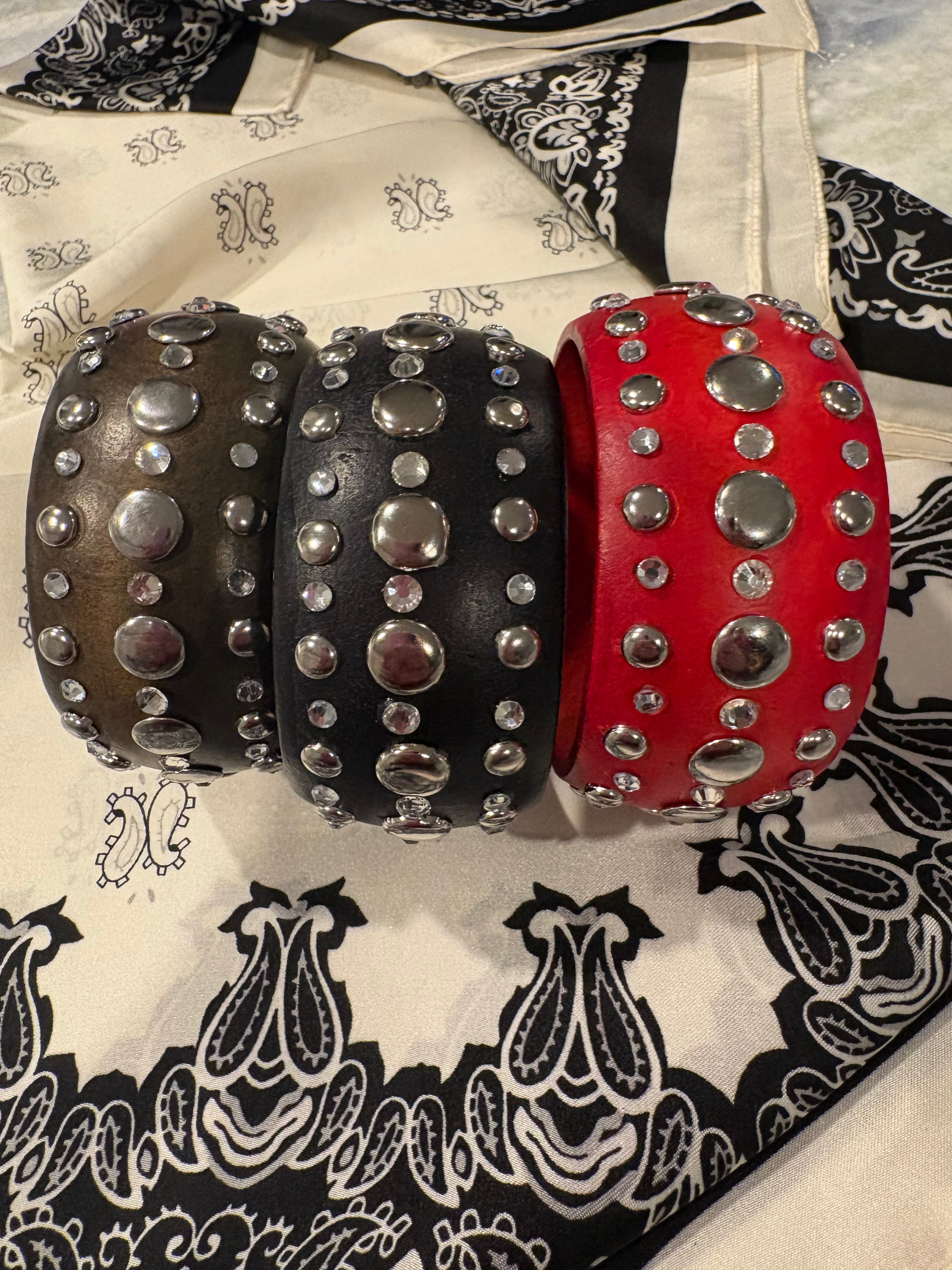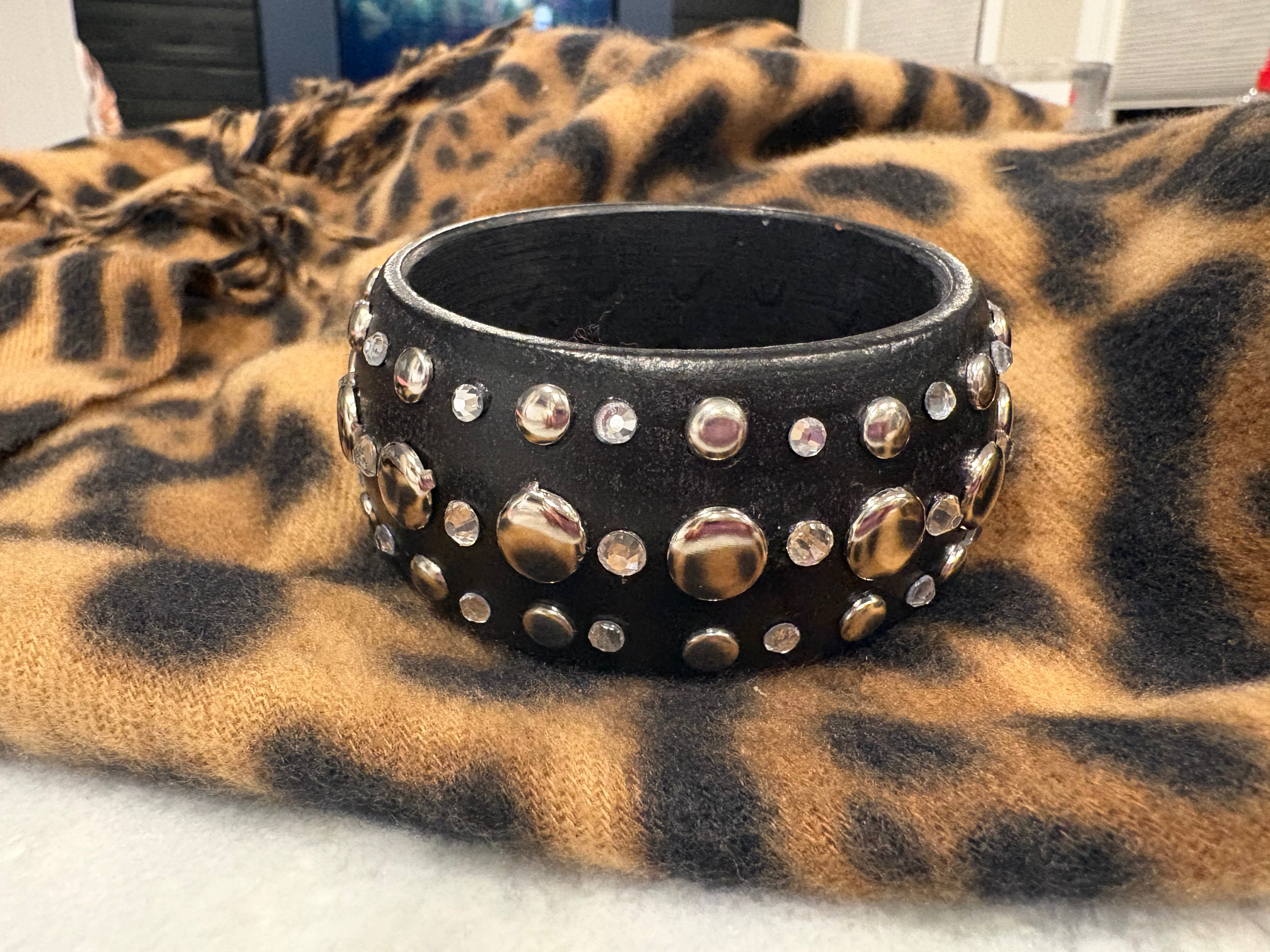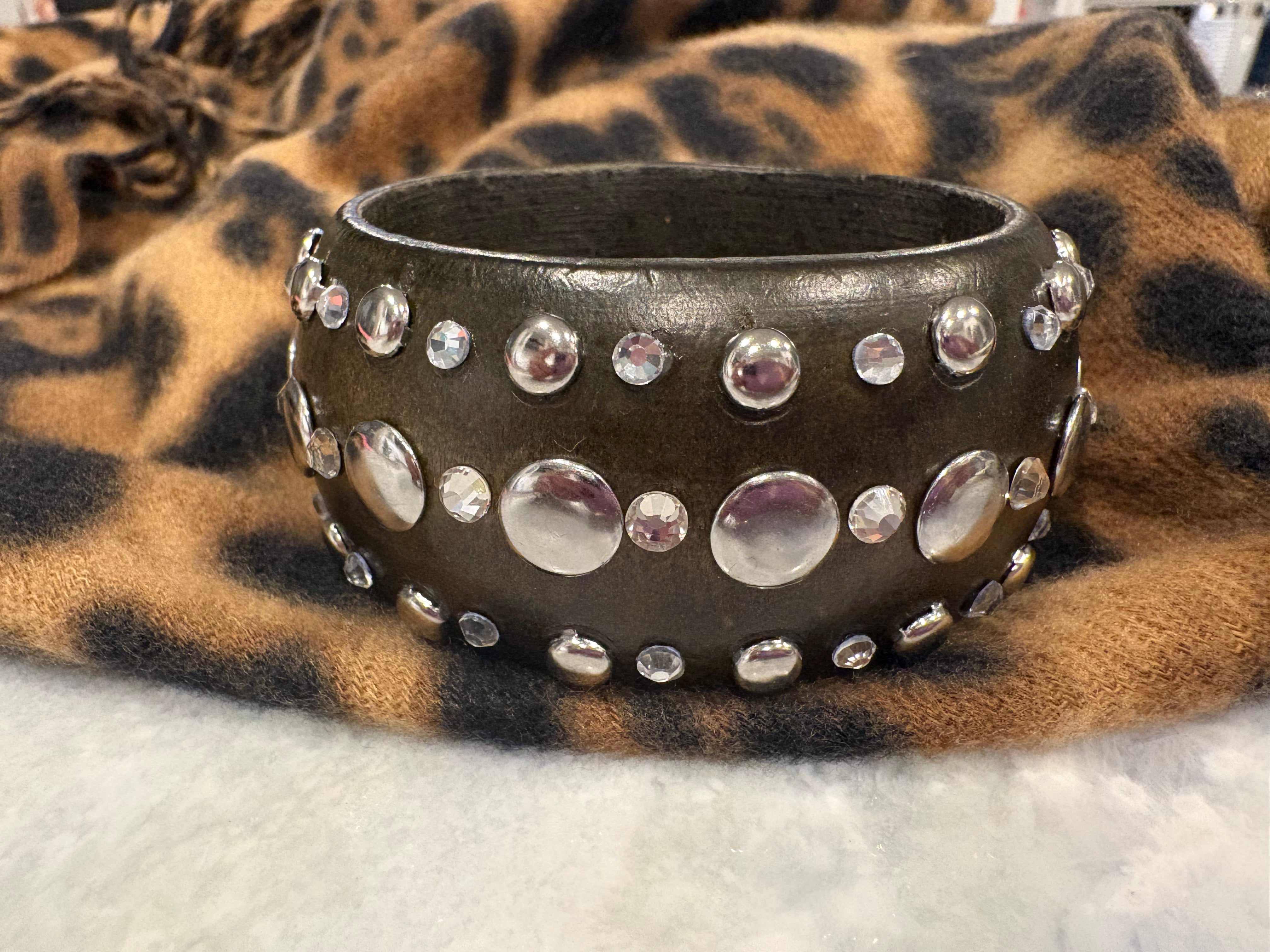 Wood Crystal Nail Head Bangle