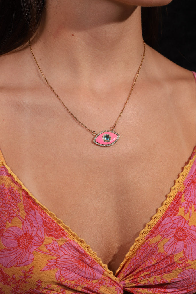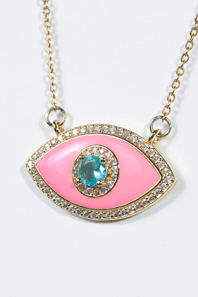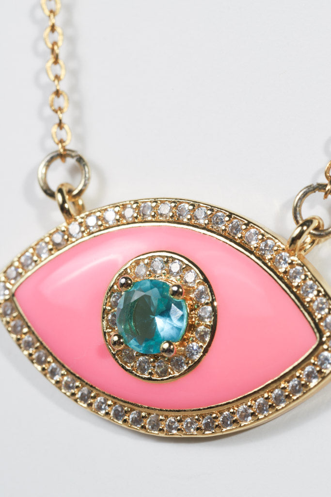 Neon Pink Crystal Evil Eye Necklace