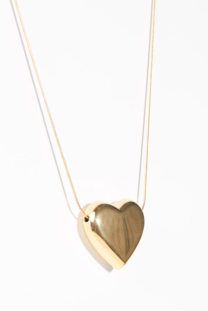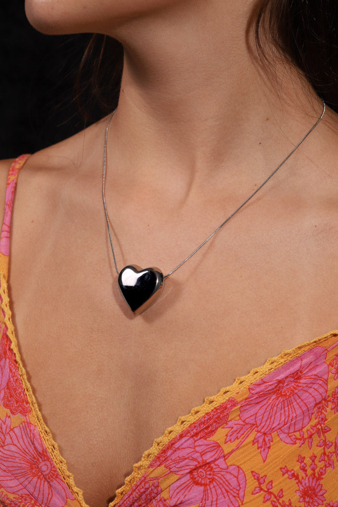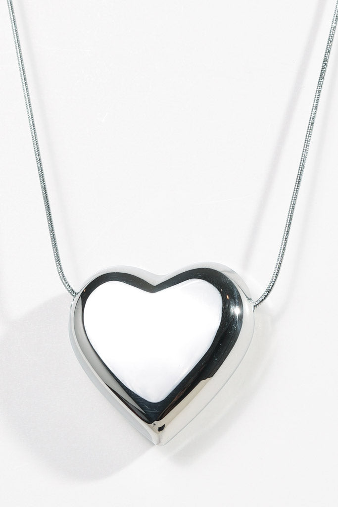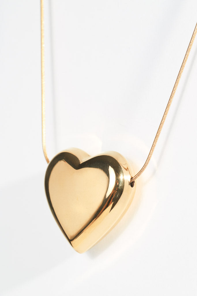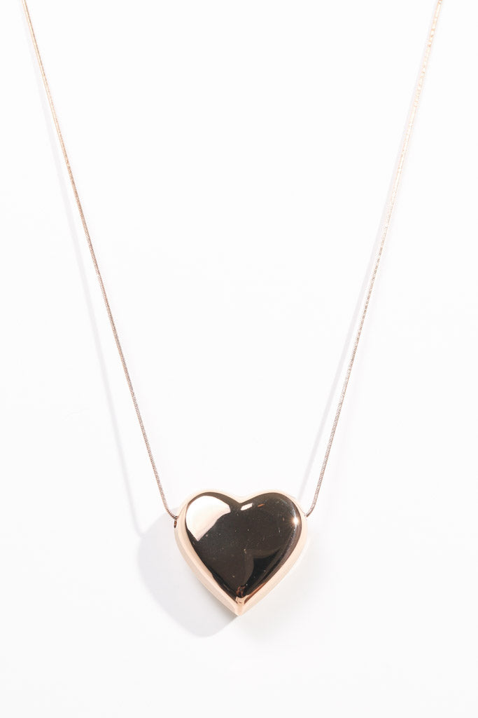 Bold yet romantic, this statement heart necklace features a large, chunky rose gold heart pendant on a sleek 16"-18" rose gold snake chain. Crafted with rose gold plating over stainless steel, it offers lasting shine and durability while keeping its modern, polished look. Perfect for adding a touch of love-inspired drama to your outfit—wear it with a crisp white shirt, a silky blouse, or your favorite little black dress.