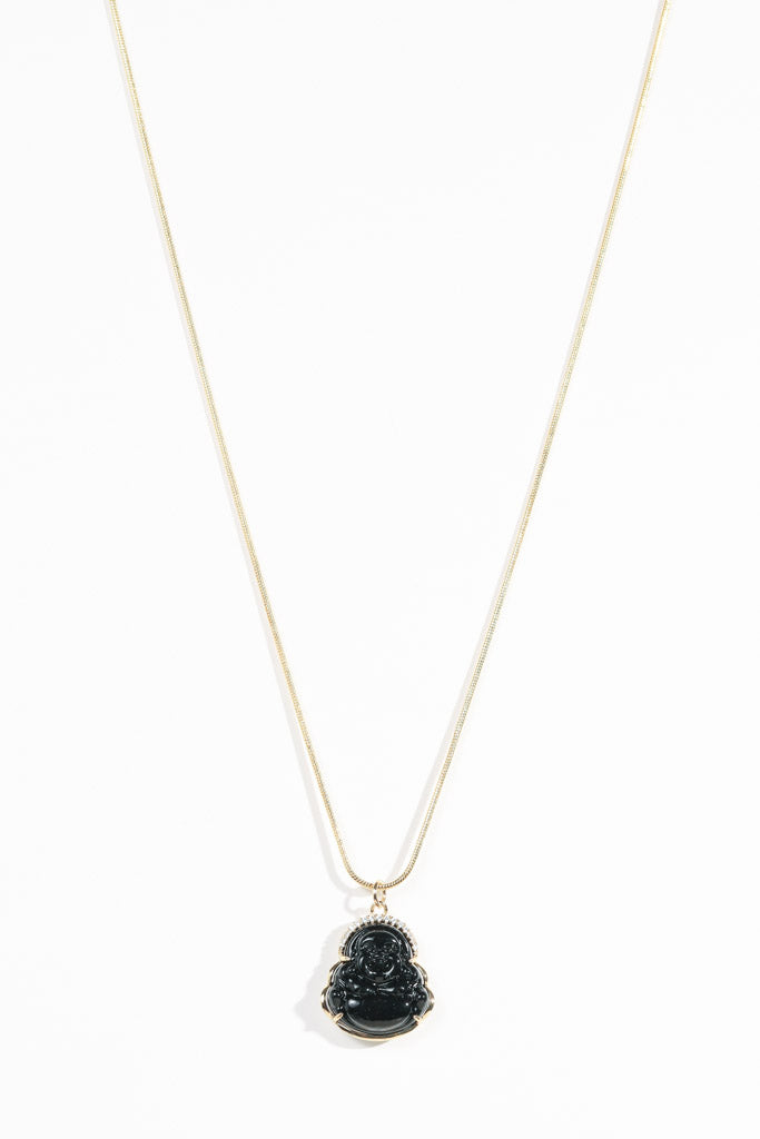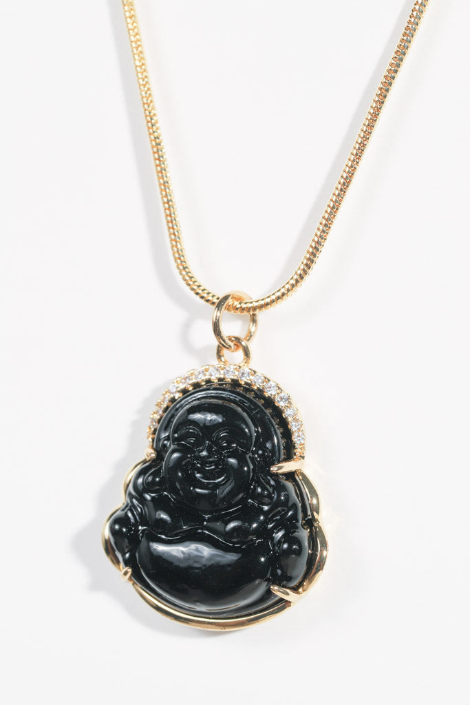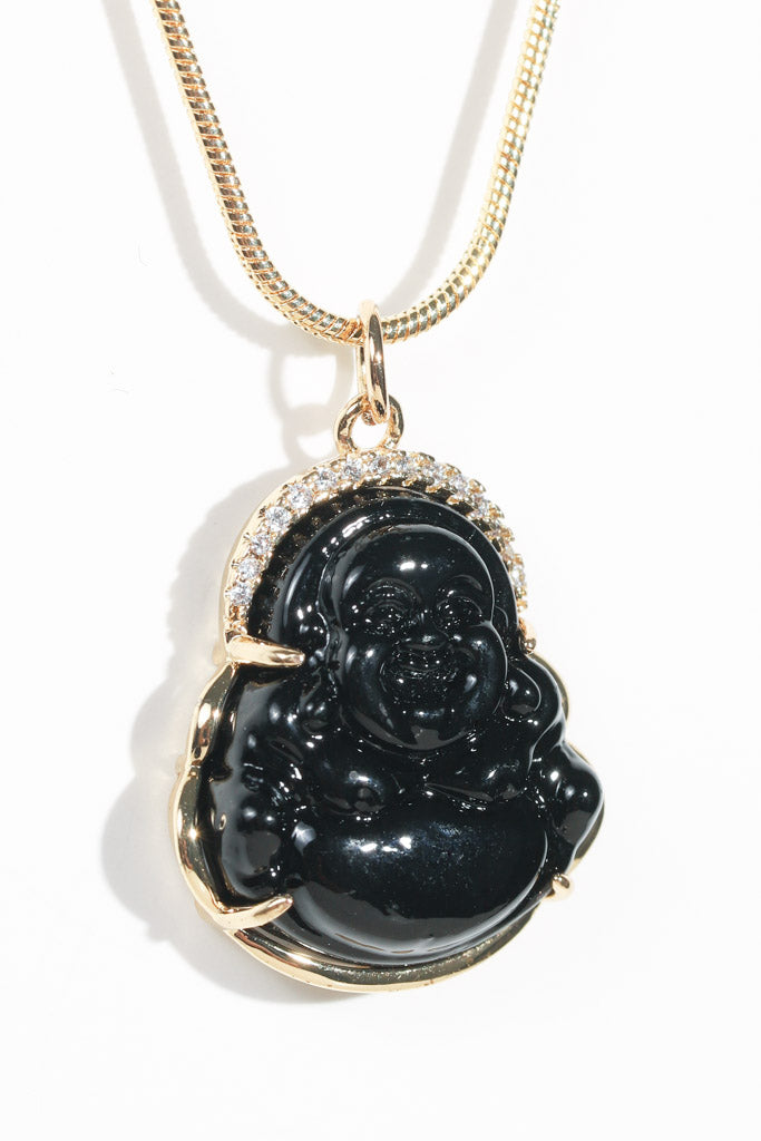 Black Resin Buddha Necklace — 14k Gold Filled Halo