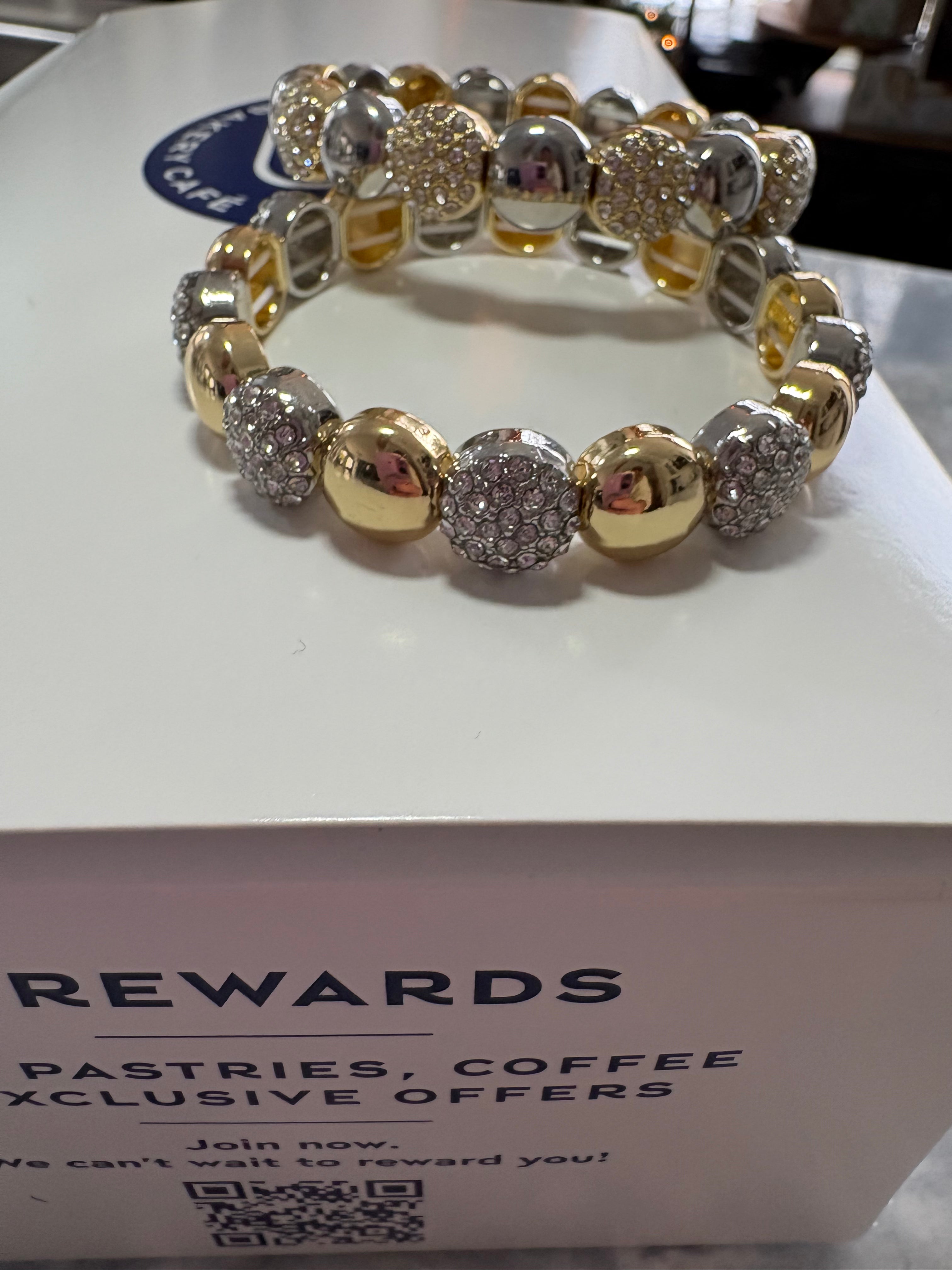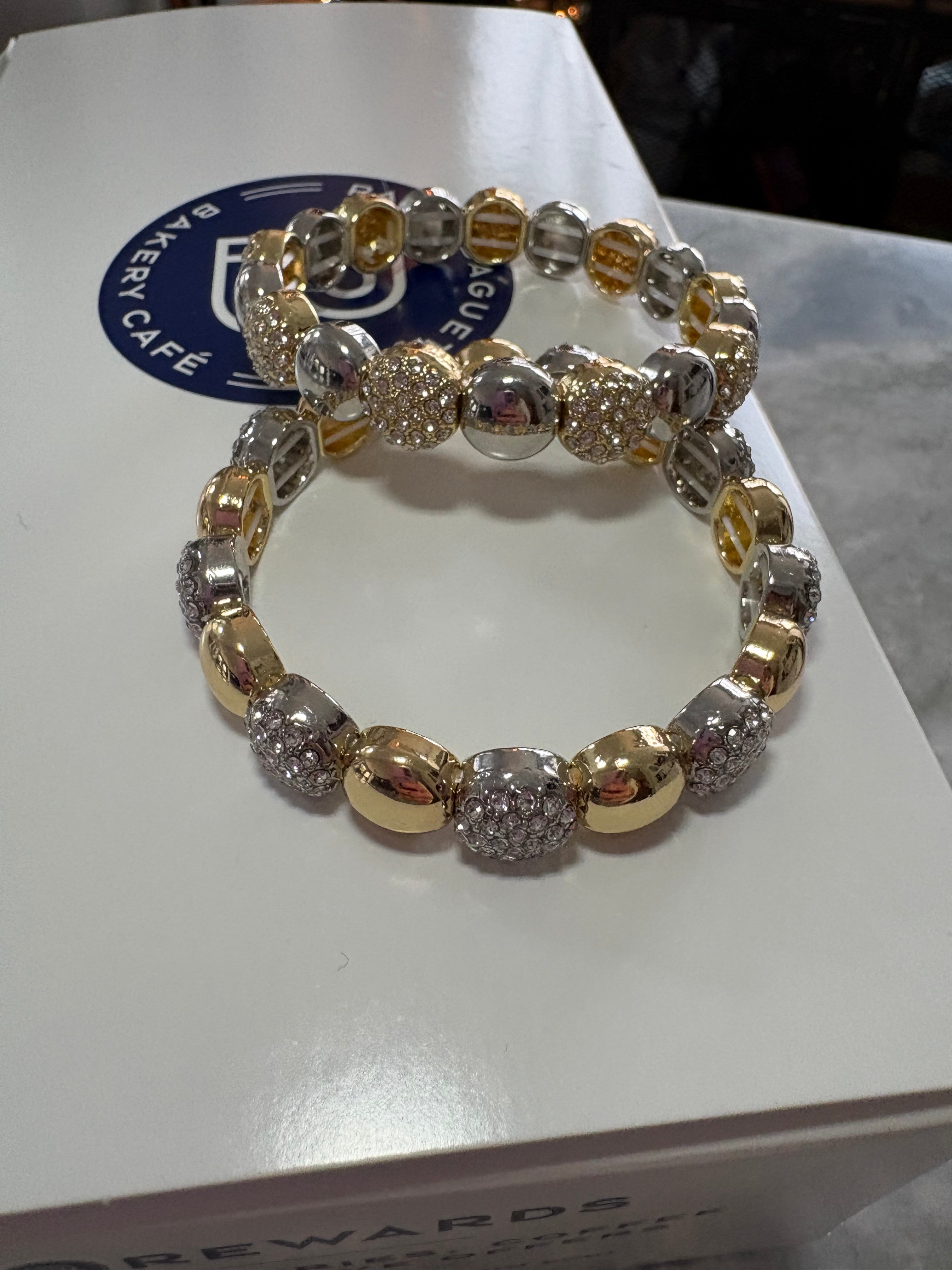 Silver and gold round stretch bracelets. (Listing is for one bracelet).