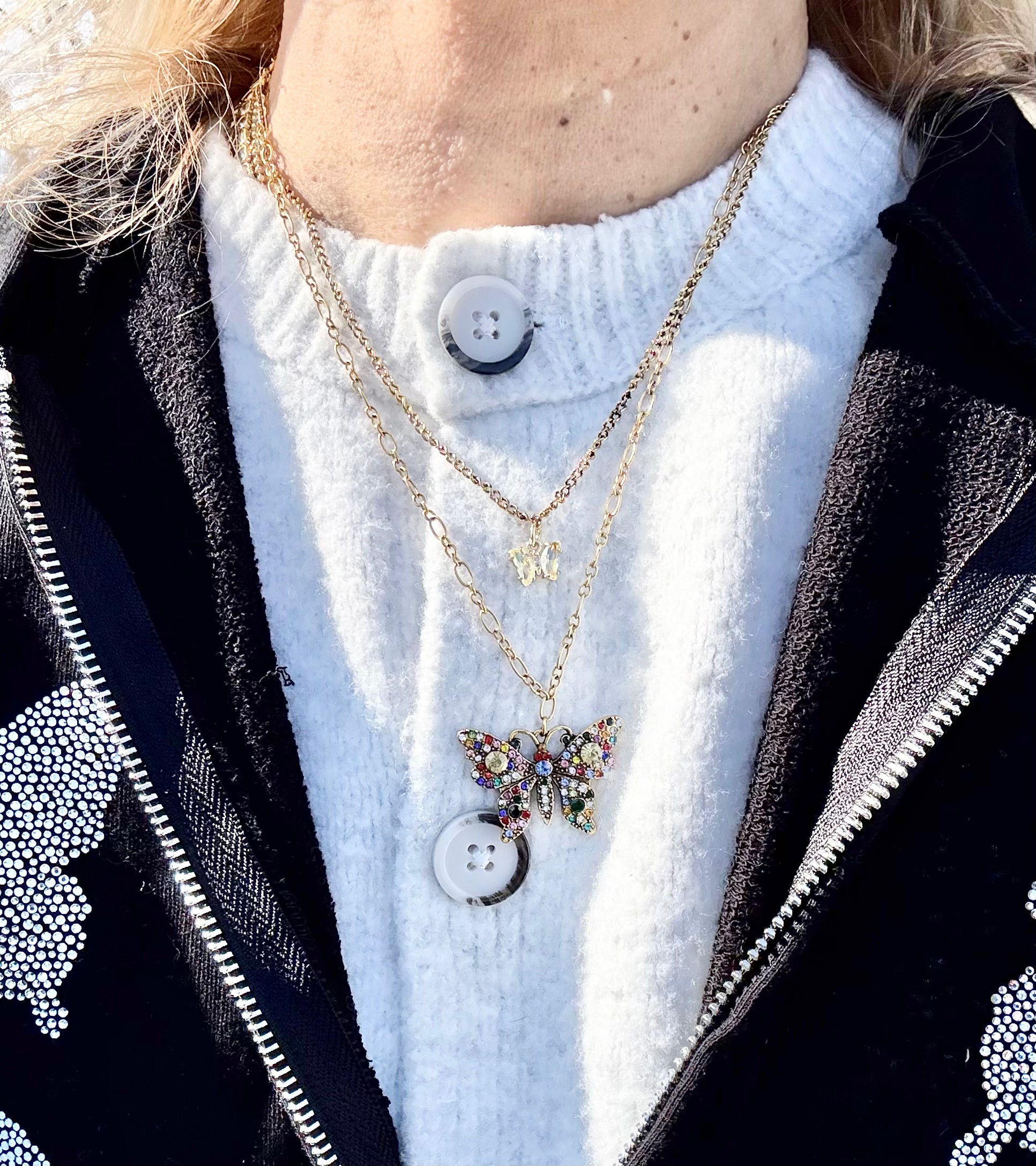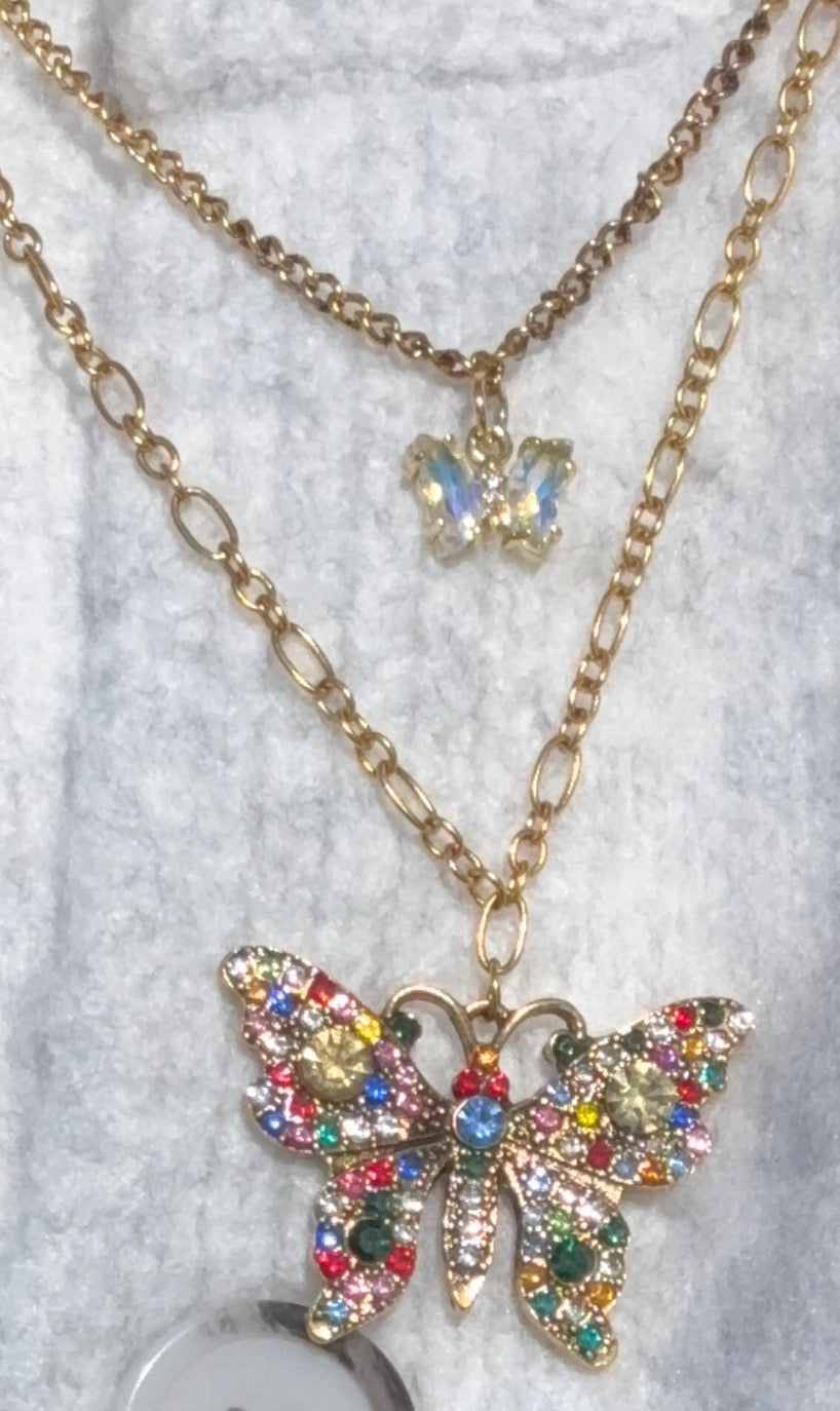 Vintage rhinestone double chain butterfly necklace. This so reminds us of the vintage rhinestone jewelry in the 70s and early 80s. It is so special and such a vintage treasure. This is one of one and it will go fast so if you see it and it’s still in stock and you want it. Buy it now!