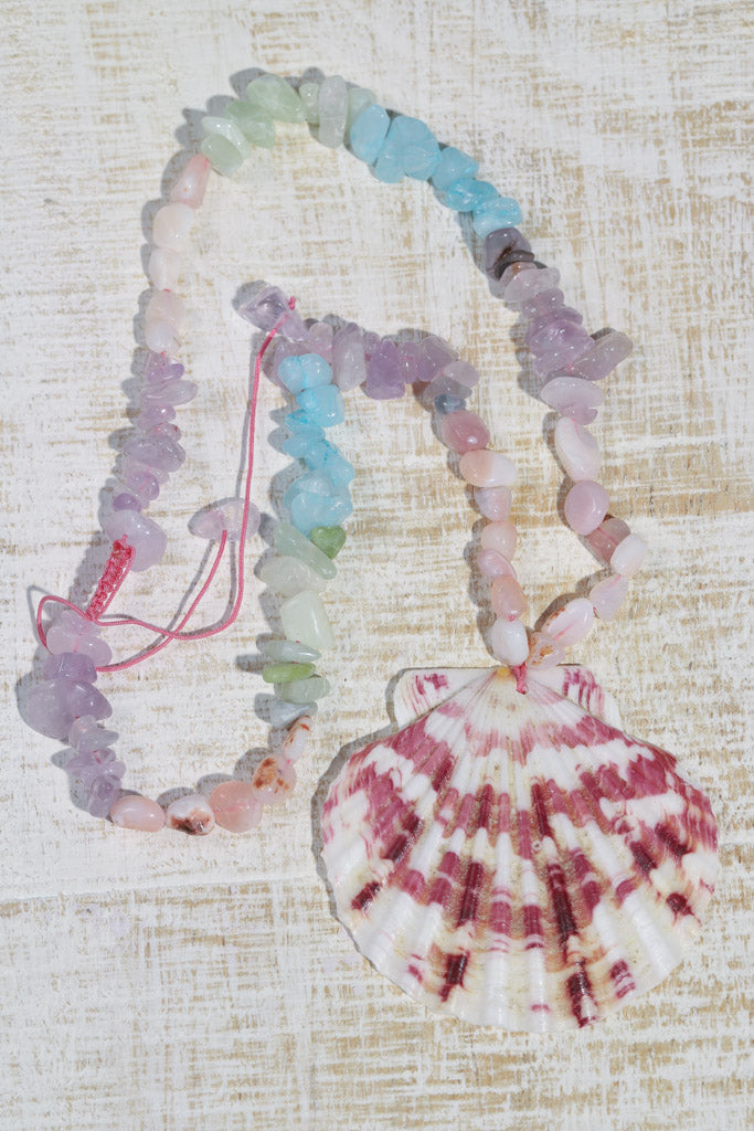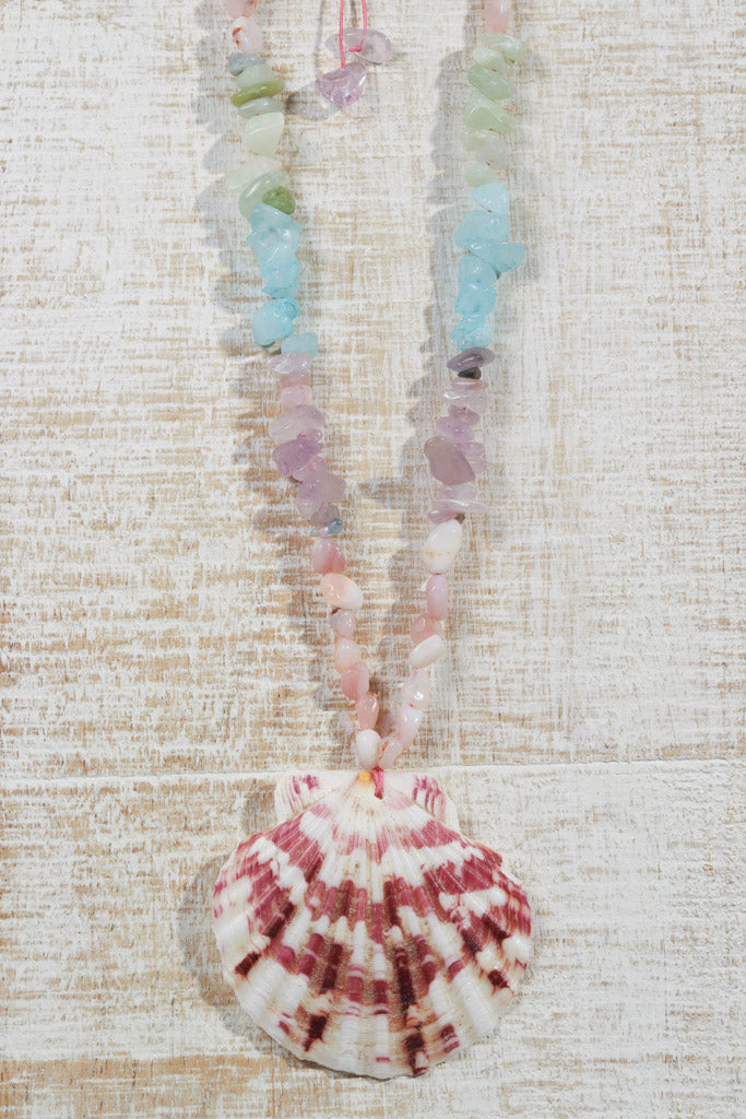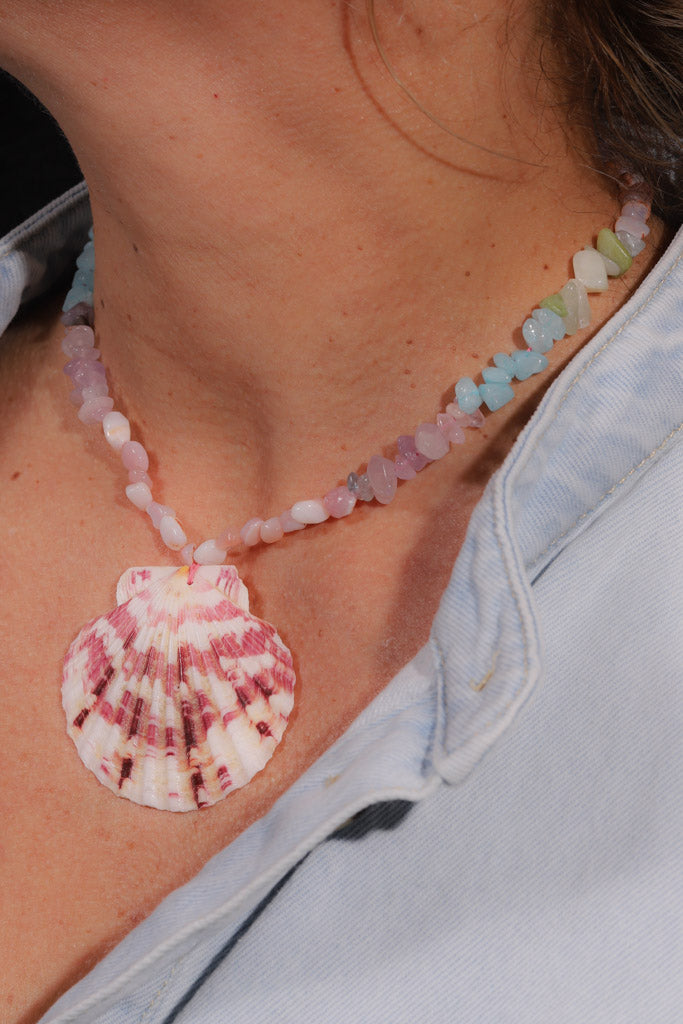 Front and center is a large brown-and-white genuine shell, making a true seaside statement. The whole piece feels like the nostalgic treasures you’d find at your favorite boardwalk shop or tucked away in a beach-town boutique—the kind of keepsake you’d hold onto for years.