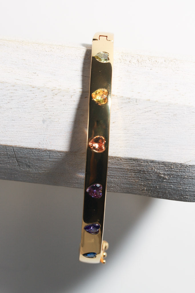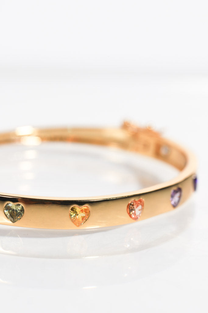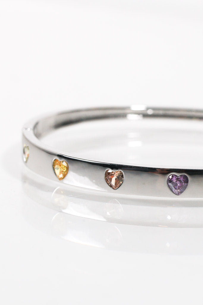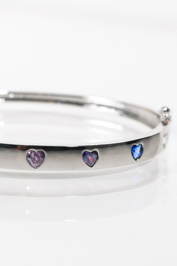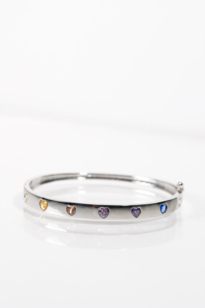 Featuring pink, blue, yellow, and purple glass heart stones, it’s the perfect mix of playful and polished. Designed with a secure slide-in safety clasp for a sleek, comfortable fit.