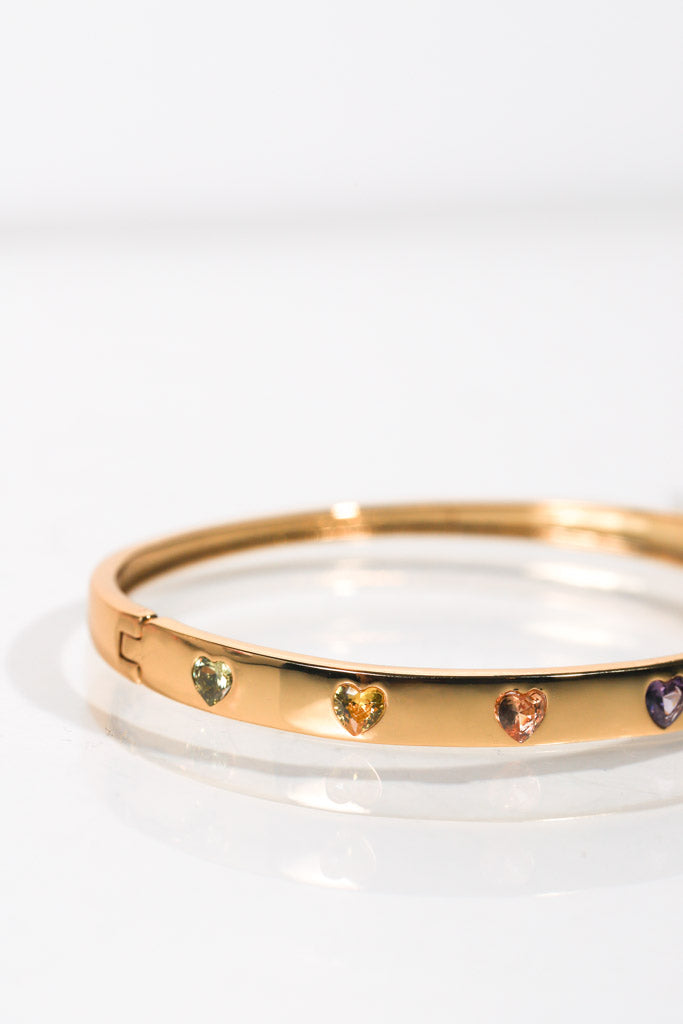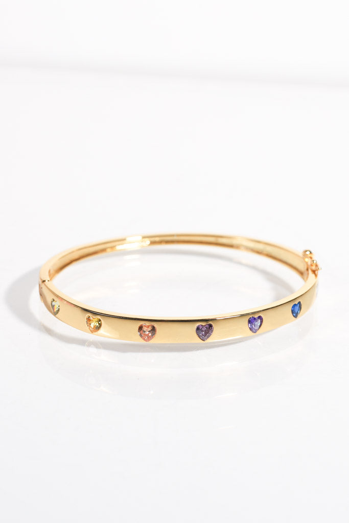 Add a pop of color and a touch of luxe to your stack with this heart-stone bangle. Crafted in 14K gold fill or silver-plated stainless steel, this high-quality piece delivers shine that lasts—without the luxe price tag.