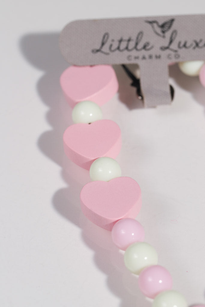 Pinky Pink Seed Bead Heart Necklace