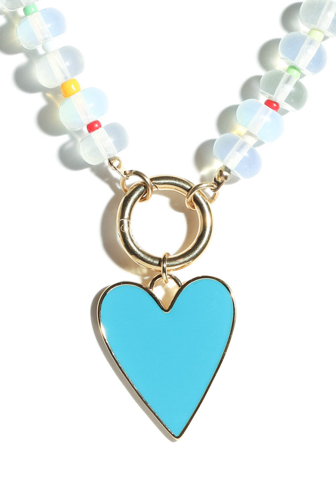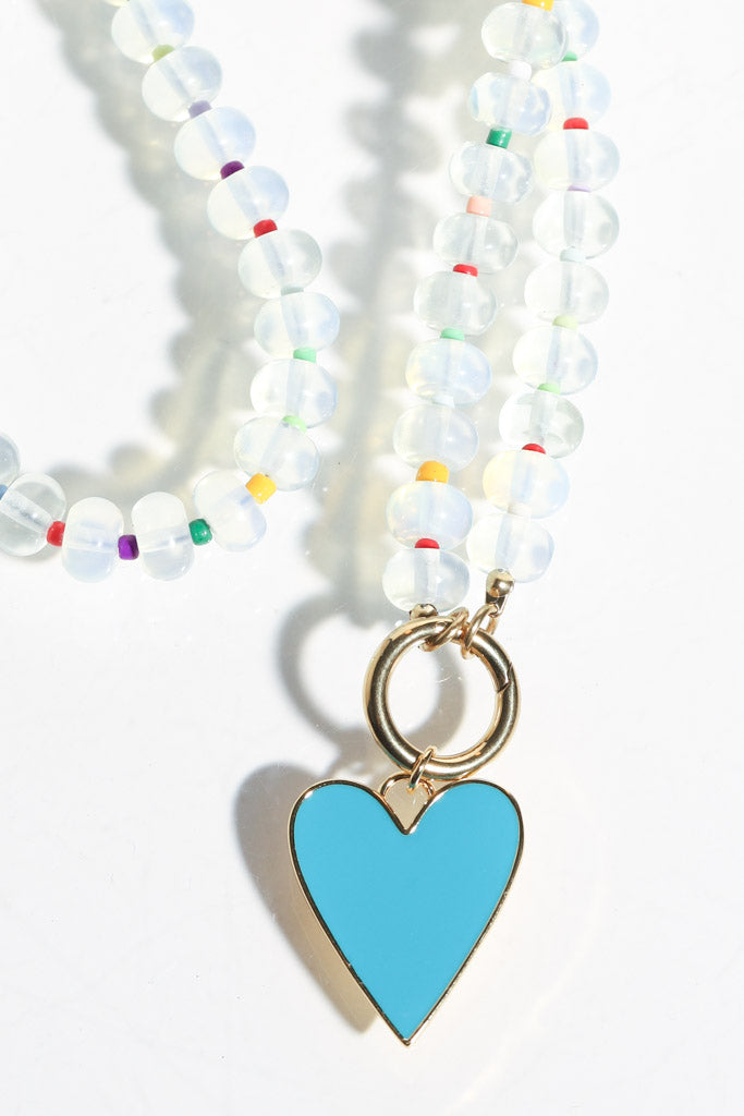 Clear Colorful Beaded Blue Heart Necklace