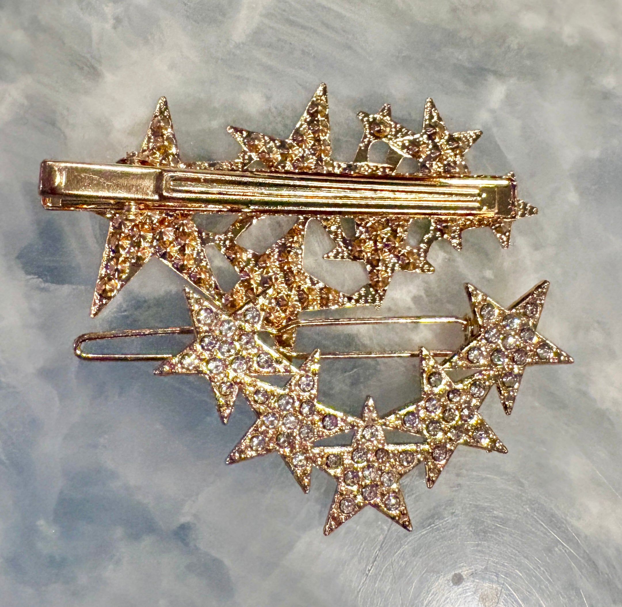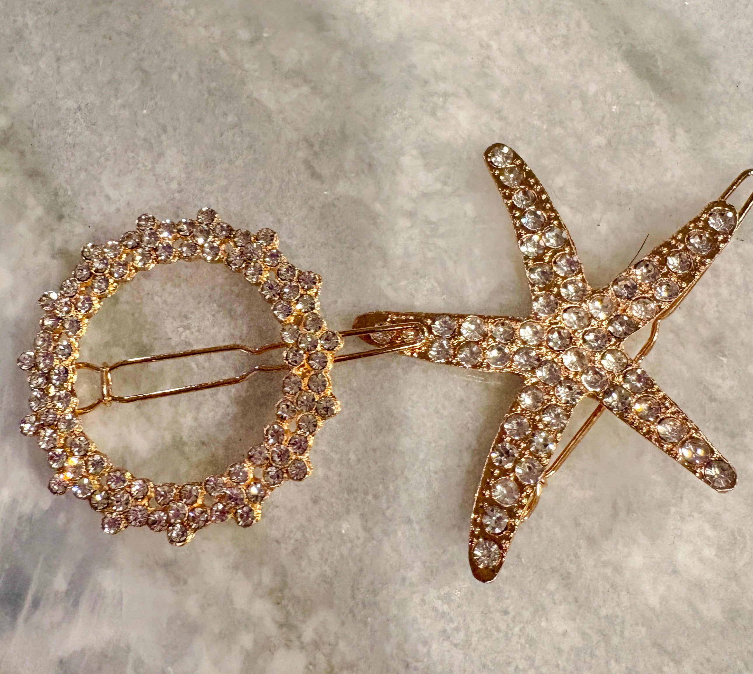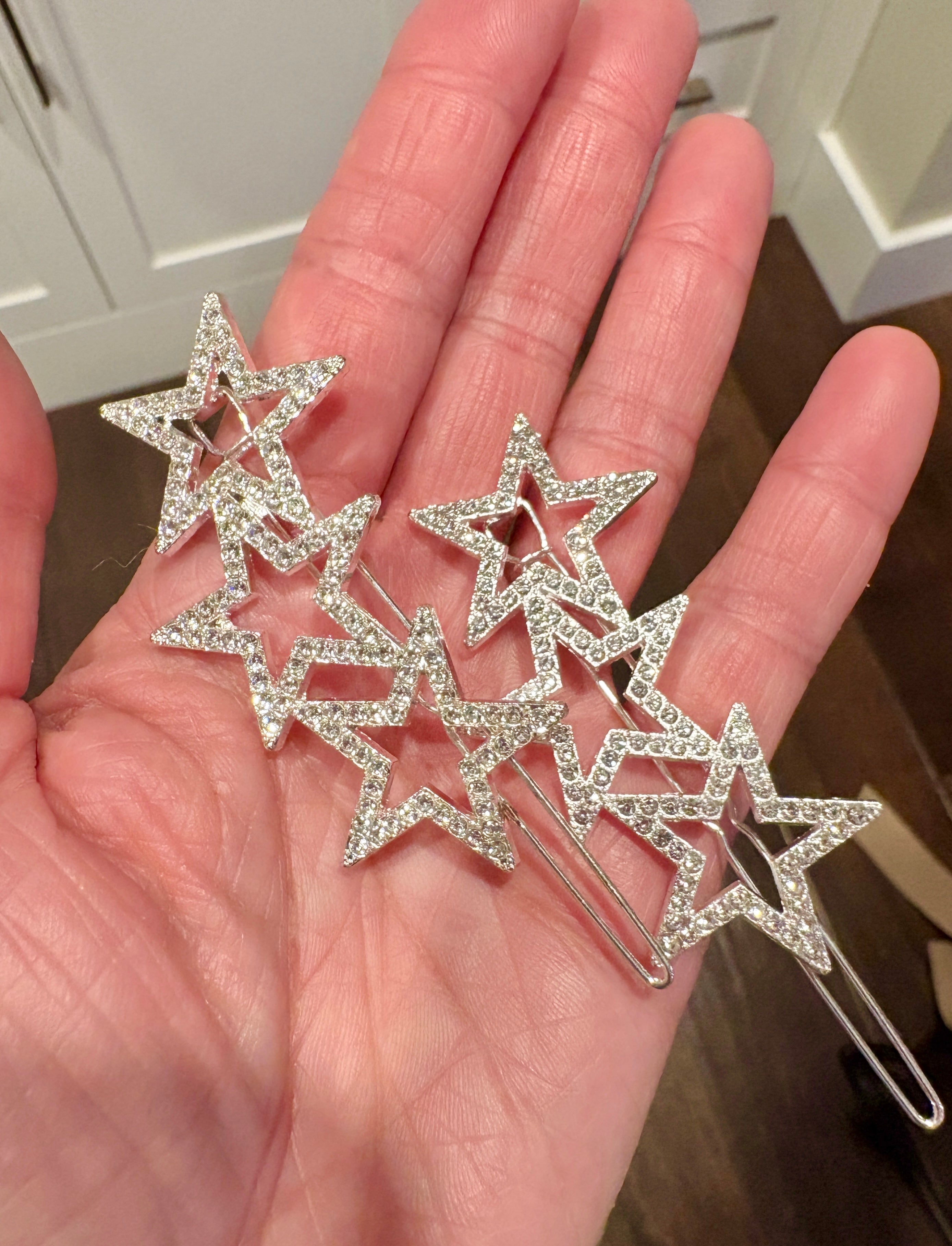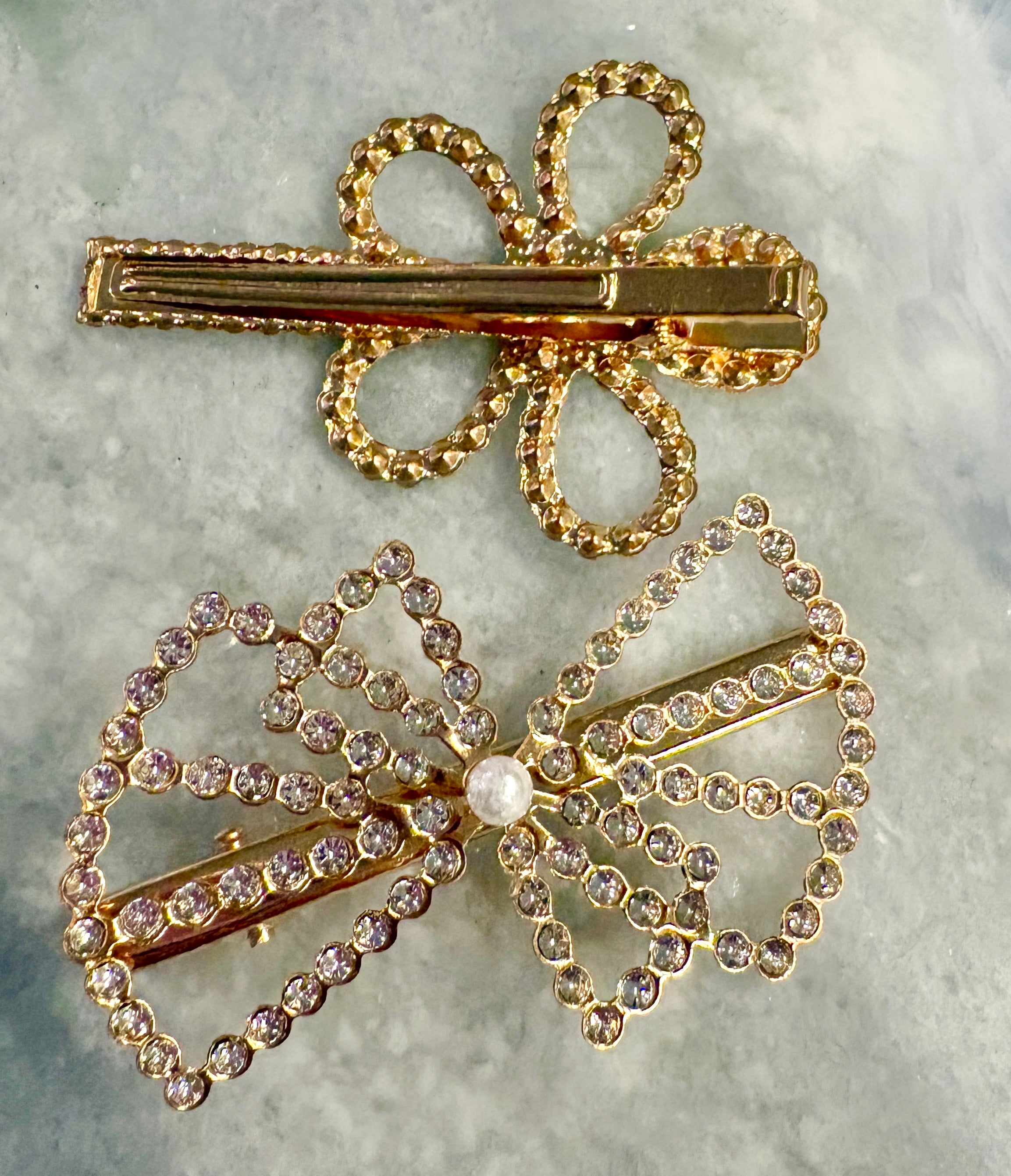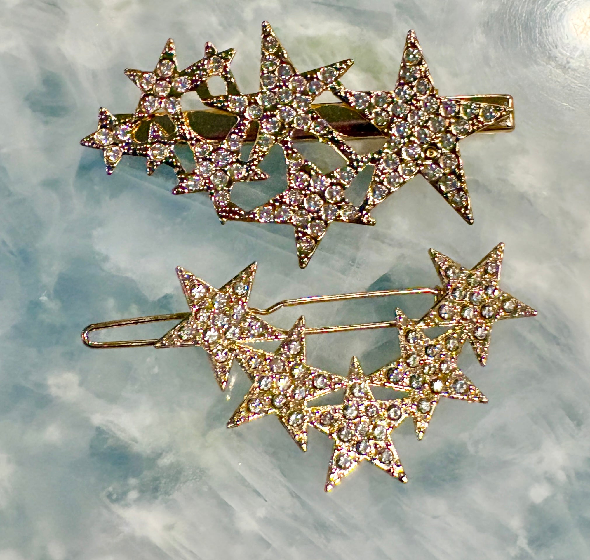 Sparkly crystal barrettes will elevate any outfit! These barrettes come in pairs. You can wear one at active or both together. However you wear them, you’re sure to shine anywhere you go! These barrettes are jewelry for your hair!