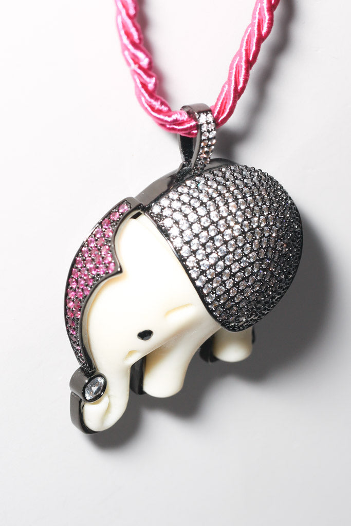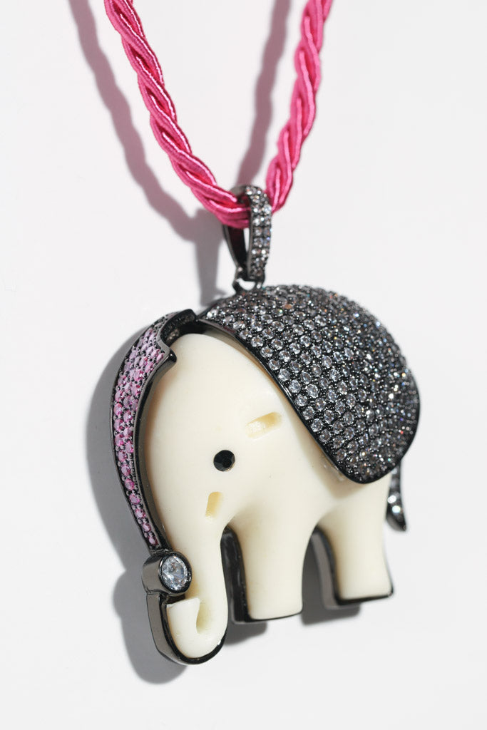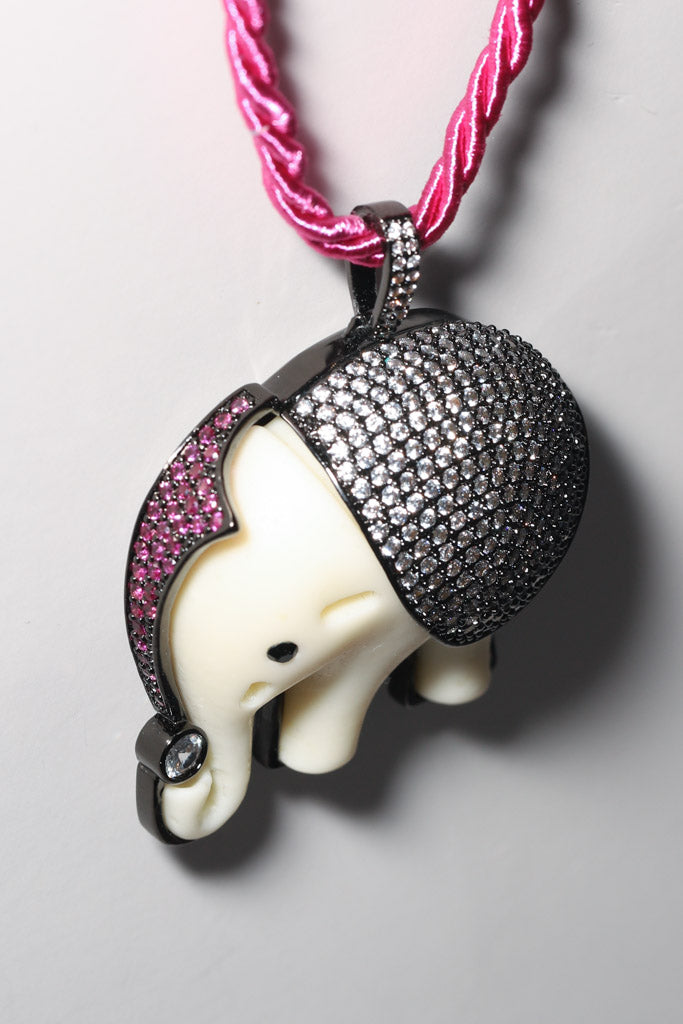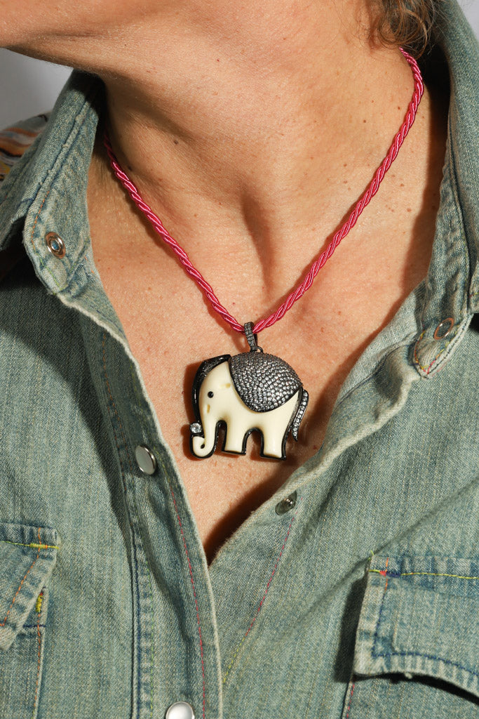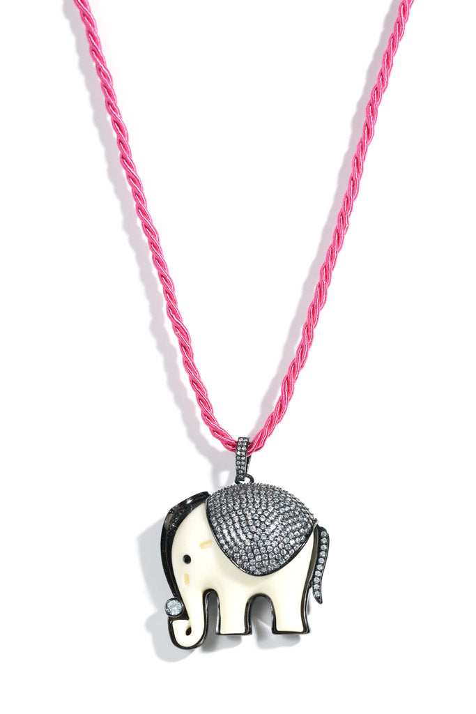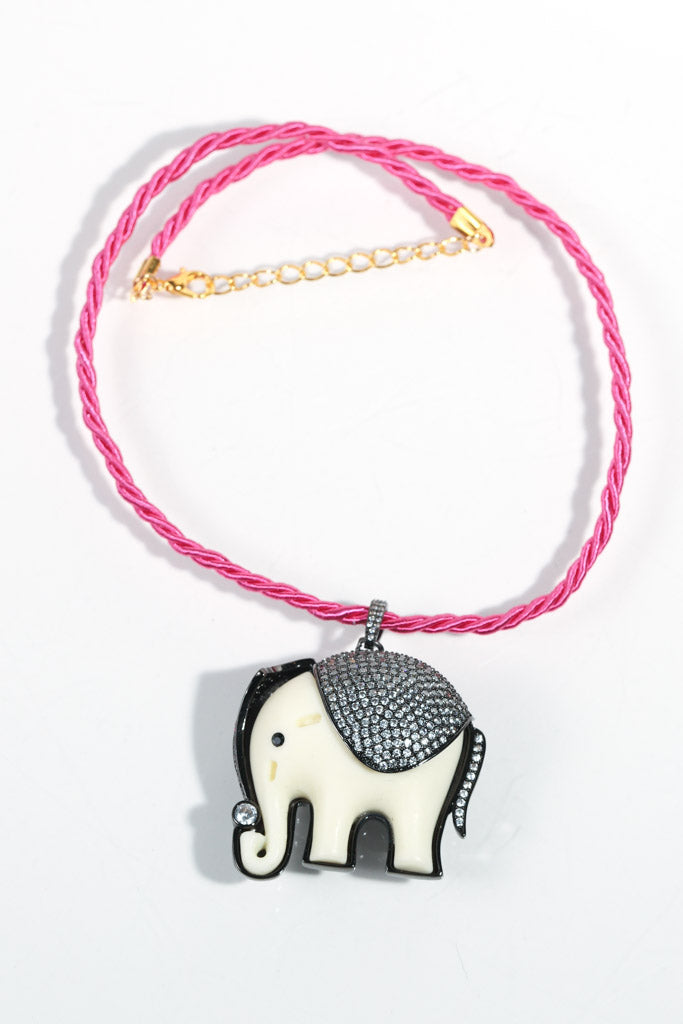 Hot Pink Silk Rope Elephant Necklace