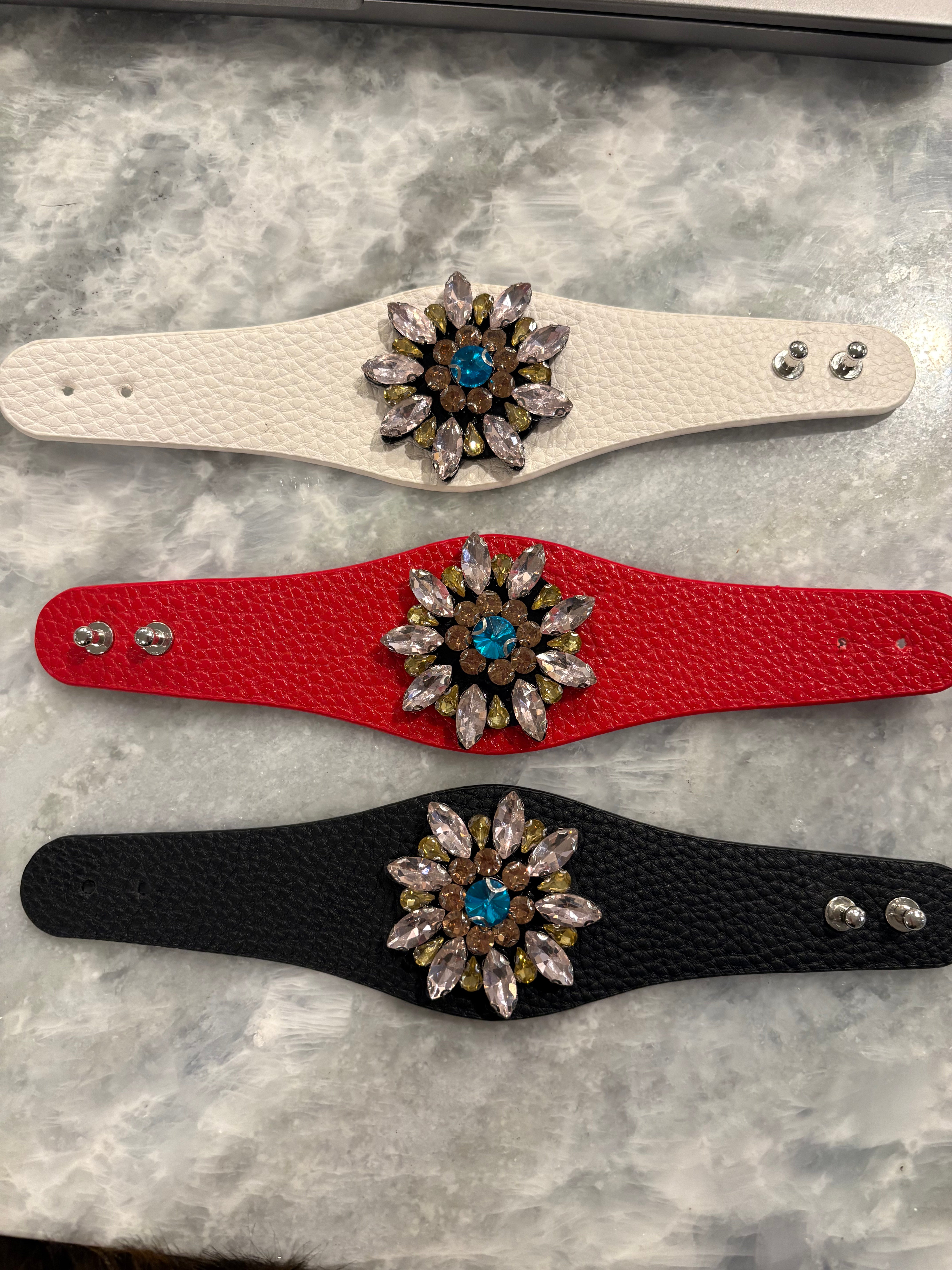 Leather Jeweled Bracelet