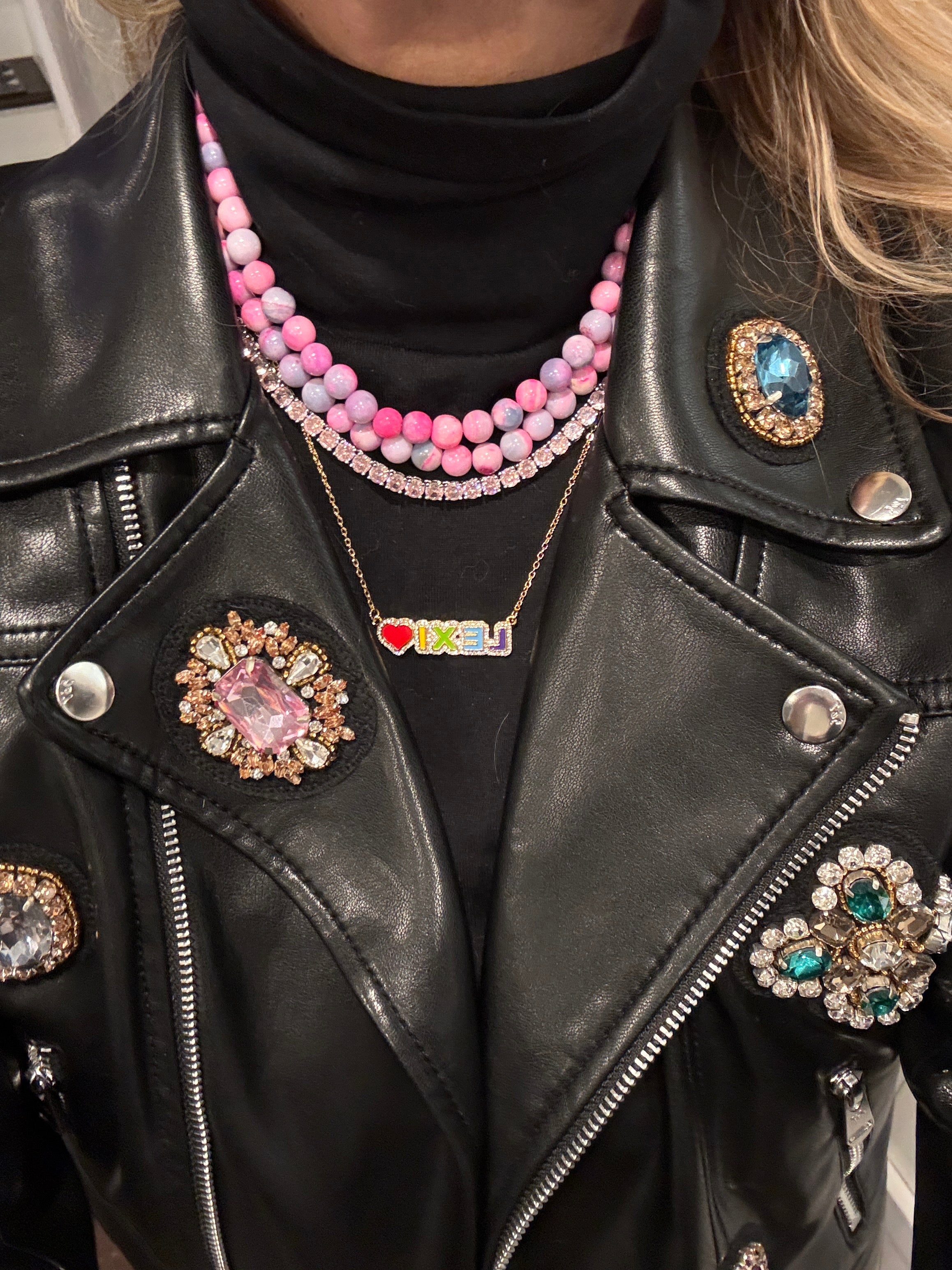 All the necklaces in this Collection are interchangeable and And also layered together. Each necklace is beautiful on its own As well!. These are handmade, hand, dyed, and one of a kind!